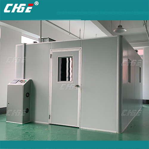 3.4 加熱器放置于老化房頂上循環風道中,四周加防火隔熱材料。采用PID溫度模塊控制,溫度到達產品所需要溫度后,根據室內溫度波動自動調節加熱器功率大小配合保溫庫板的保溫性,使室內溫度精確穩定在所設定溫度數值。